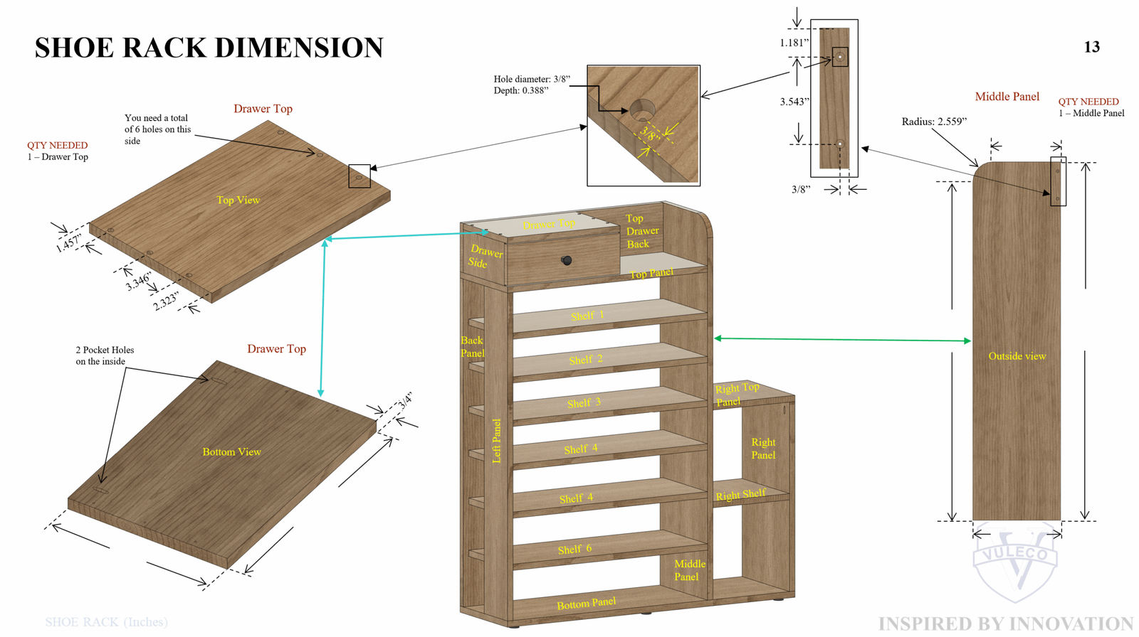 SHOE RACK (Inches)SHOE RACK (Inches)